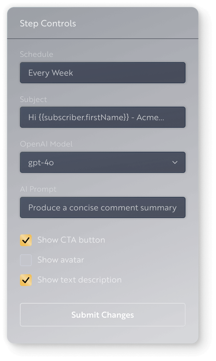 21 subject: z.string().default('Hi {{subscriber.firstName}} - Acme Comments'),