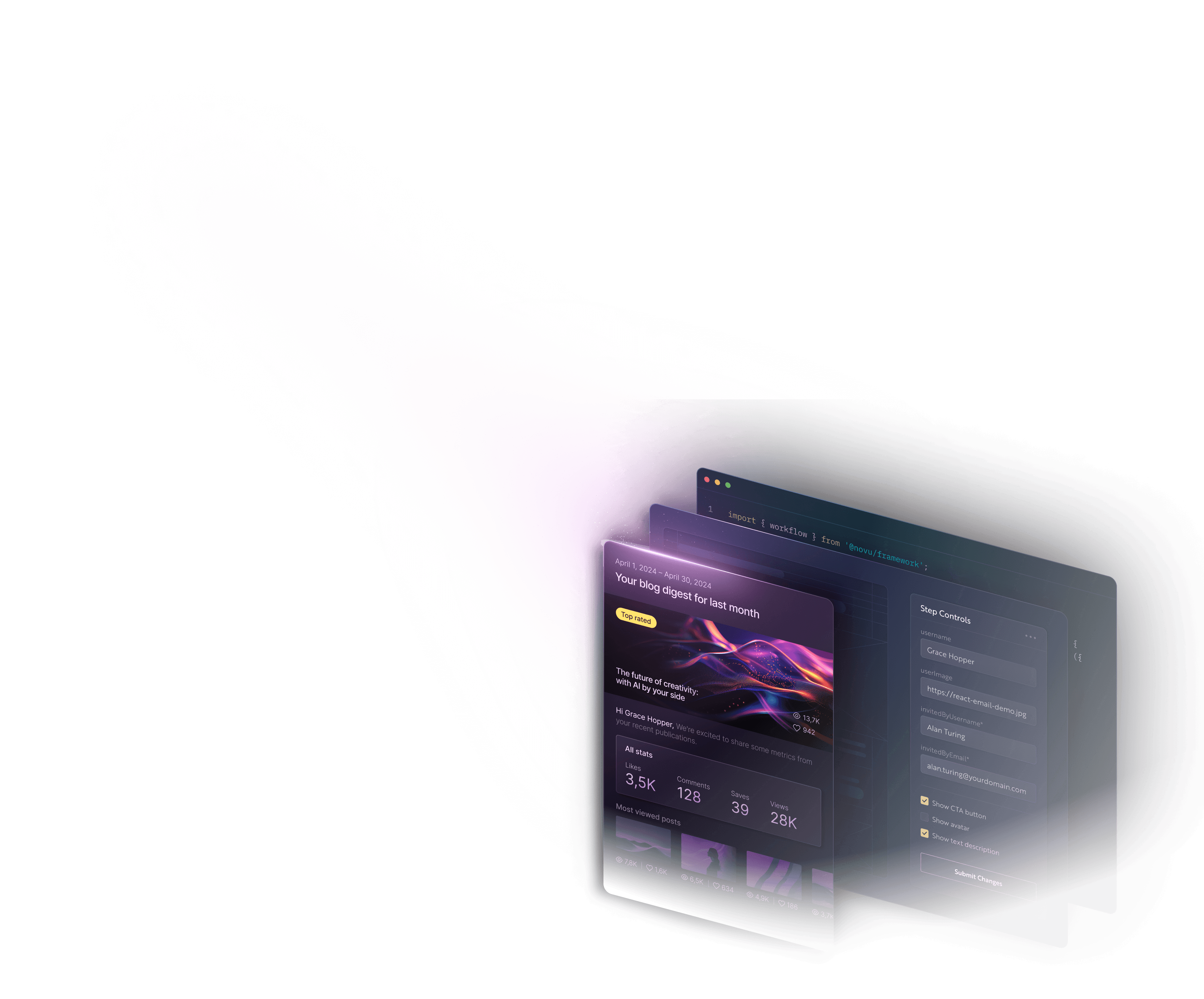 Define workflows in code using frameworks like Next.JS, Nest.JS, and React, and deploy confidently while developing in your IDE of choice.
